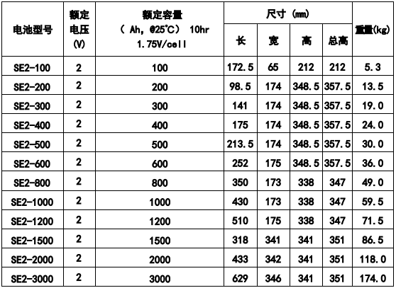 SE 2V系列 電力工程直流系統用閥控密封式鉛酸蓄電池